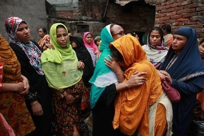 在孟加拉國(guó)首都達(dá)卡,火災(zāi)遇難者家屬失聲痛哭
